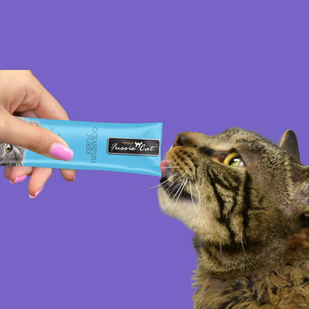 Want a treat your cat will love at first lick? Try Fussie Cat Puree sticks! They're super creamy and indulgent tasting, and cats absolutely love it! Plus, it's an easy-to-feed cat treat with essential vitamin E for your cat’s diet to support healthy skin and coat.
