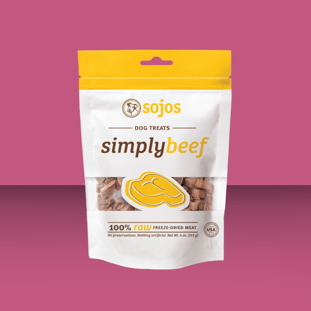 These mouth-watering, bite-size morsels are the perfect training treat for dogs of all sizes! Sojo's Simply Meat Treats are gently freeze-dried so all the natural enzymes in raw meat are carefully protected, and pampered pooches get the real, raw meat they crave