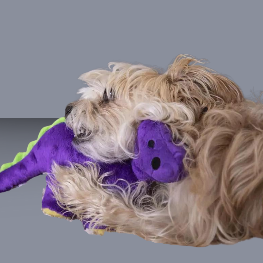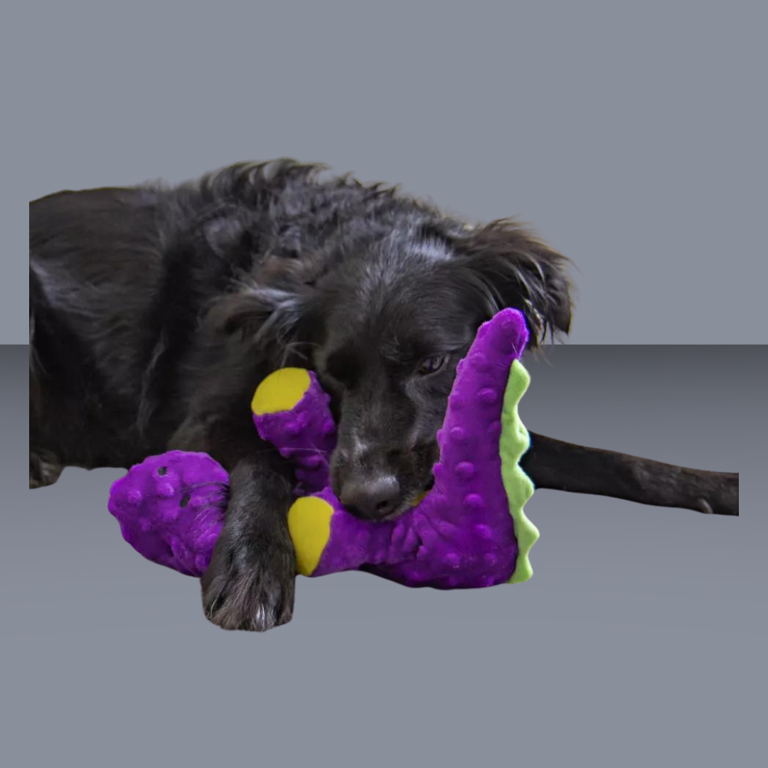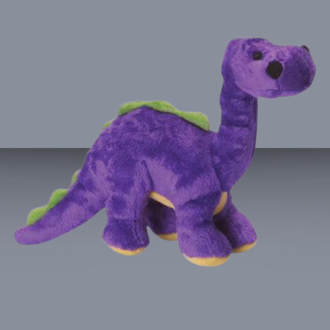 It's the purple dinosaur your dog would go back to the past to get ahold of! This dino is double stitched and has a tough inner lining to hold up to play, but the soft bubbled outside plush is perfect to snuggle up to, too. His minimal stuffing means less on your floor, and an extra floppy toy to shake and play with for your dog!