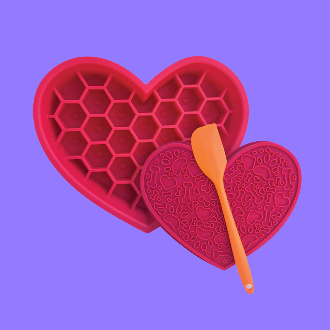 Your dog will love meal time even more with this beautiful new slow feeder! This 2-in-1 design features a slow feeder bowl on one side and a textured lick mat on the other, offering both mental stimulation and digestive support for your pet. It's designed to prevent fast eating, this feeder helps reduce the risk of bloating, vomiting, and obesity. The lick mat is perfect for calming anxious pets, turning treat time into a relaxing experience. Plus, it's dishwasher safe, so cleanup is a breeze!