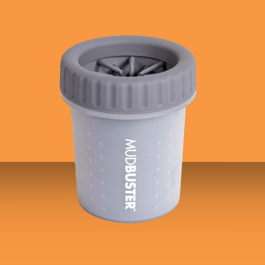 Muddy paws from the park- that you don't want to ruin your car's upholstry? The Mud Buster cleans those paws quickly and easily! Just pour a bit of water in, put a dirty paw in, and twist! The soft silicone bristles will brush away the mess- and then you can just pour out the dirty water when you're all done. Plus, it comes apart into three pieces that are top-rack dishwasher safe! Used without water, it can even get off caked-on snow after a romp in snowstorm.The Petite MudBuster is perfectly sized for smaller and toy dogs: it measures 4.3 inches tall and 3.65 inches wide. The open top allows a paw up to 2 inches wide. Breeds include Chihuahua, Dachshund, Maltese, Pomeranian, Yorkie and Boston Terriers.