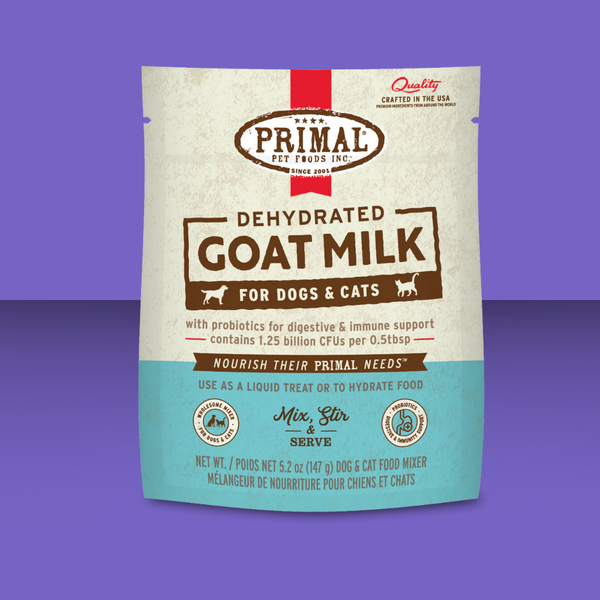Goat's milk is a great nutrient-rich hydration option that’s packed with vitamins, minerals, electrolytes, and more! It's a great source of taurine, and is easily digestible for both dogs and cats. It's a great way to add calories for pets who are underweight- but also great to help lose weight (just add less of their normal diet- the extra hydration helps their tummy stay full!). Full of anti-histamines to help with itchy allergies, goats milk is great frozen into ice cubes as a treat, poured into kibble, freeze-dried, or raw food- or even just great on its own! Wondering why it's slightly yellow? That's the tumeric- great for inflammation, and for keeping you from accidentally pouring it in your own cereal on those sleepy mornings!