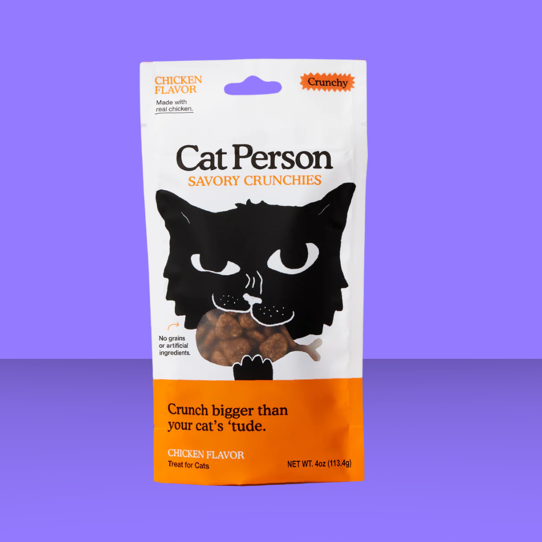 You're a cat person, and that means you want to pick the crunchy treats that make your cat purr! These treats are made with you (and your kitty) in mind. They're packed with real chicken, fiber-rich pumpkin, and flaxseed for a shiny coat. Perfect for indulging your cat’s meat-tooth with satisfying, tasty bites- we know your cat will be demanding more!