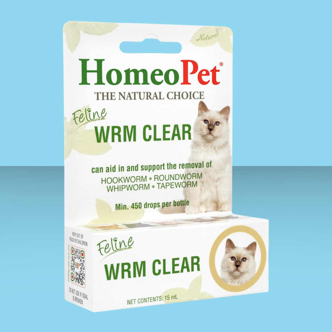 Worms are an awful time for everyone! HomeoPet Feline WRM Clear medicine may aid in and may help support the removal of tapeworm, whipworm, roundworm and hookworm in cats. May also aid recovery from worm effects and detoxify from effects of conventional products. May help with worms at the cat’s anus, shedding worms, scoots on ground and rice-like granules in stool and on backside. WRM Clear does not kill the worms but may help the cat’s own immune system remove them from the body.