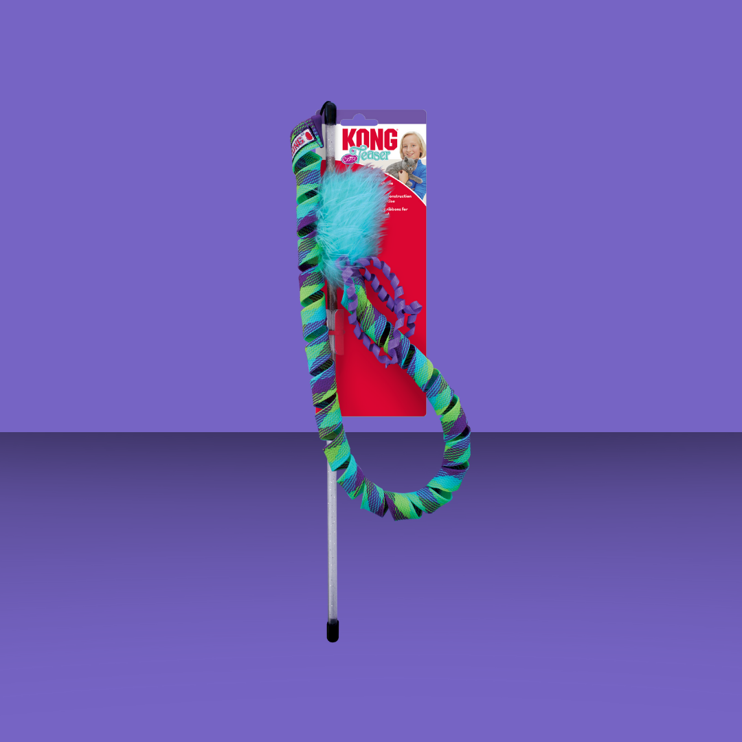 This toy puts a lil twist on your traditional teaser- every time your cat pulls down the end, it's going to bounce and spring up! Add enticing ribbon and feather, and you've got a wand toy that keeps the fun going!