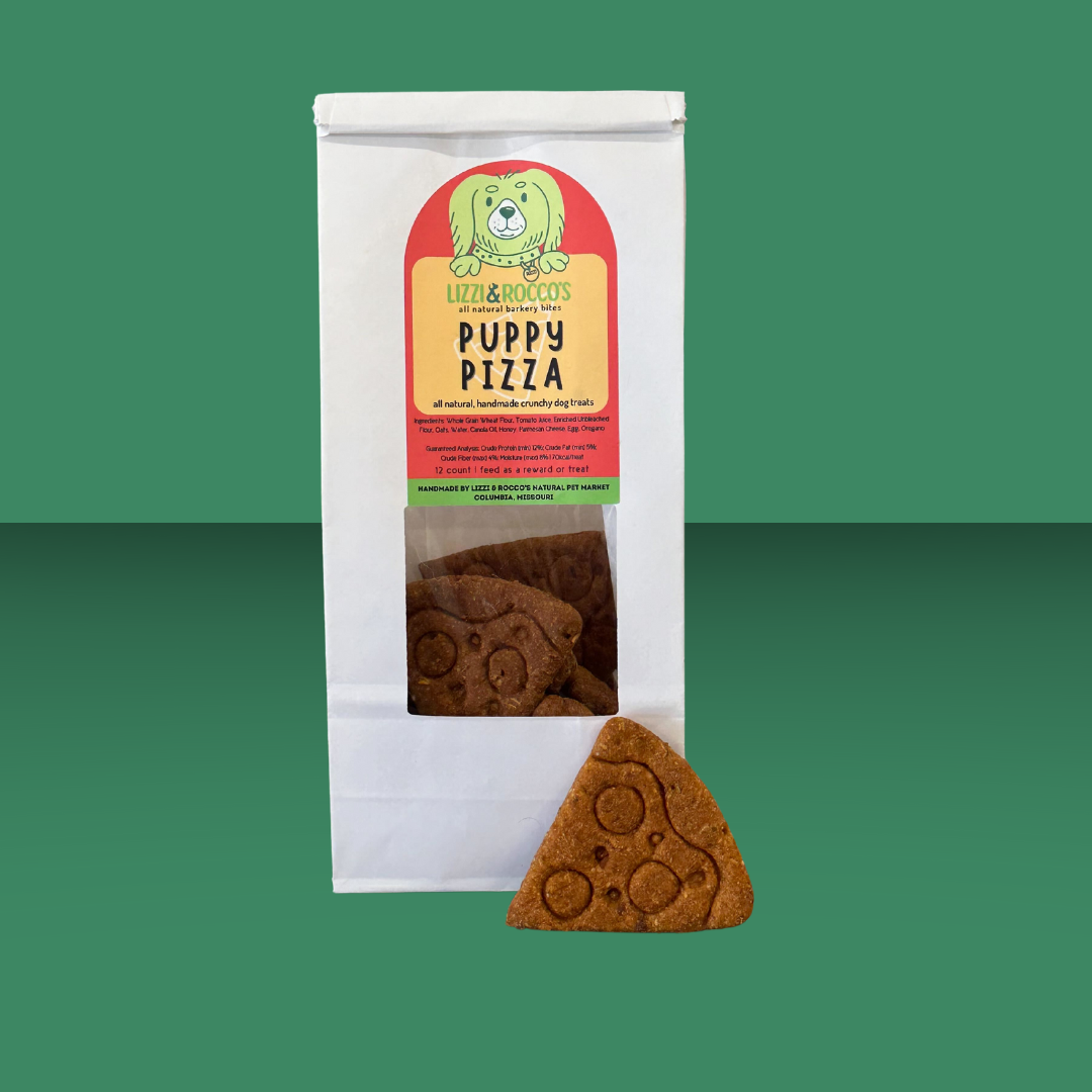 Who doesn't want a piece of pizza? Now your dog can have their own! These pizza cookies are made with love by our very own bakery, and chock full of flavor. Grab a bag so you never have to worry about running out of cookies!