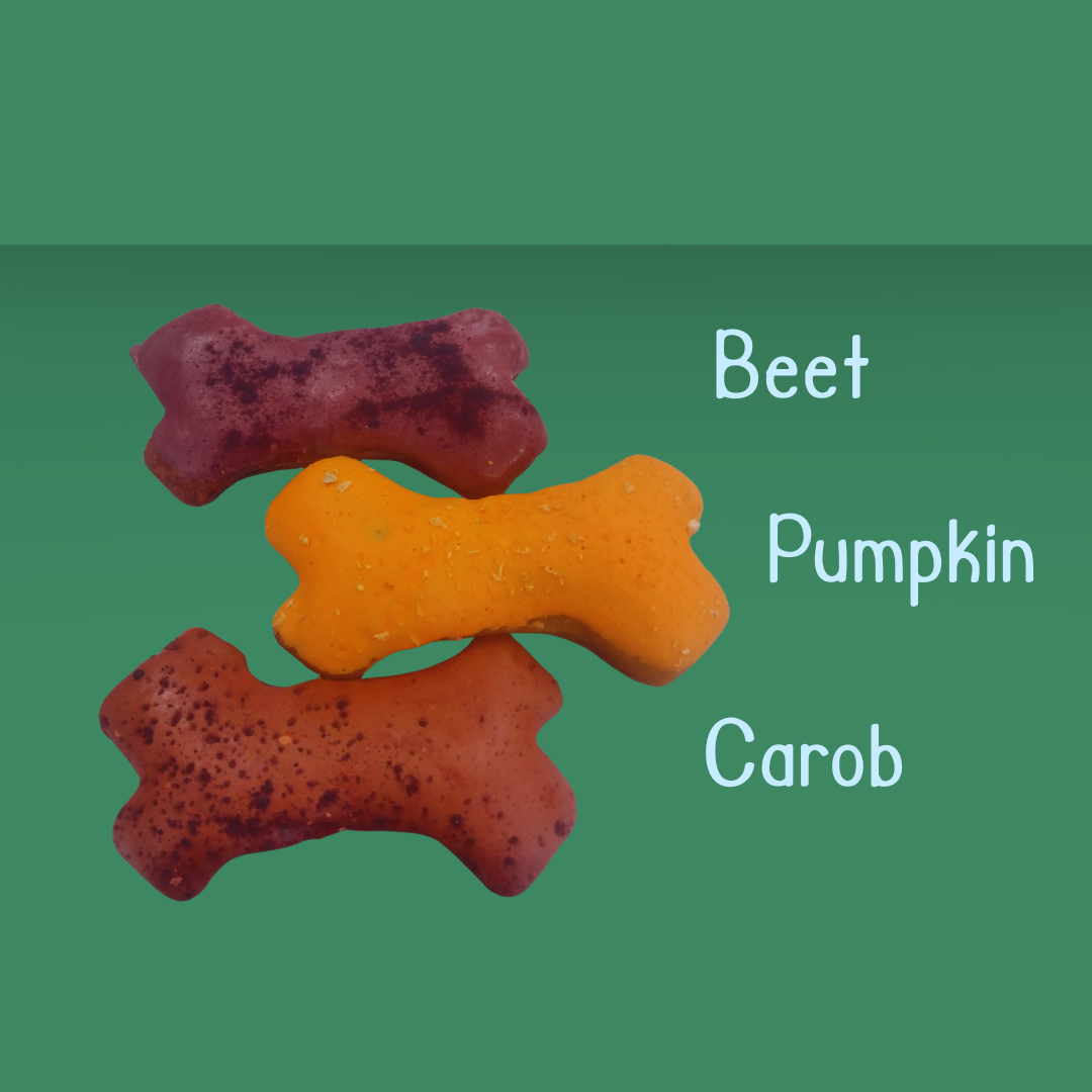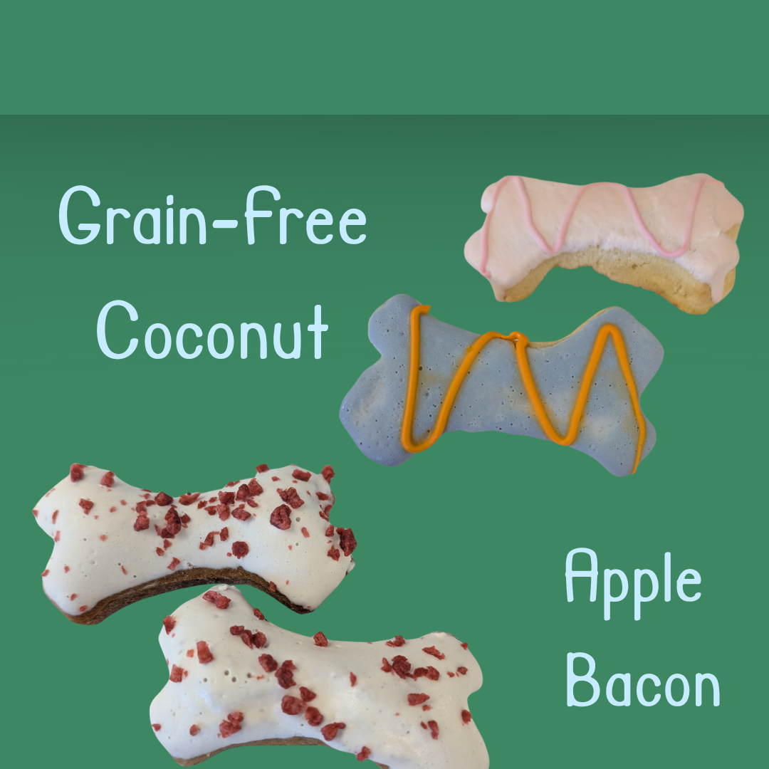 These large treats come in many flavors- Original Apple Cinnamon, Beet, Pumpkin, Carob, Apple Bacon, and for our grain-free pals, Grain- Free Coconut! If you'd like a specific flavor, be sure to let us know- otherwise, our staff will pick at random.