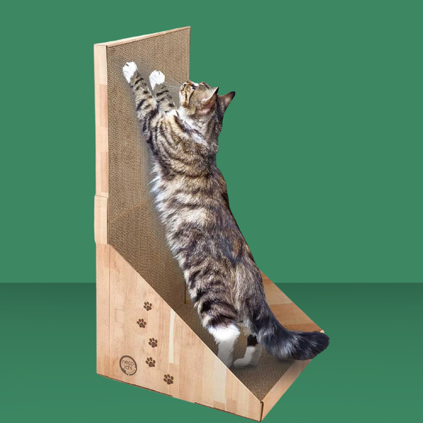Necoichi Stretch and Scratch Wall Cat Scratcher is sturdy and stable so your cat can relax and scratch with confidence! Despite its larger 27.6-inch size, the wood panel design blends effortlessly with any home interior. Scratcher is made from 100% recycled paper, 10% of which is raw pulp paper from New Zealand. Dense, durable fine-grain cardboard reduces scratching waste while providing a comfortable scratching experience for your cat. All adhesives used are plant-based and free of chemicals for your cat’s safety and your peace of mind.