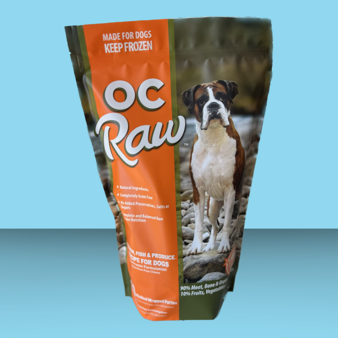 Give your dog a taste of pure, wholesome goodness with OC Raw's Chicken & Fish Patties—so fresh, even humans have mistaken them in the fridge for meatloaf! OC Raw’s patties contain no chemicals, enhancers, or preservatives and are sourced entirely from the USA (with the exception of lamb and goat from New Zealand or Australia). Perfect as a daily food source, these patties offer nutritious protein that requires smaller portions than lower-fat alternatives. Chow down, little fella!