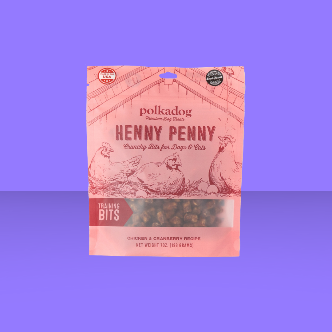 Like unexpected raindrops from the sky, Polkadog’s Henny Penny dehydrated chicken bits are a happy little discovery! Crunchy and tasty, with dehydrated chicken breast and local Massachusetts cranberries, these limited ingredient crispies are taking the canine and feline treat world by storm. Heads up!