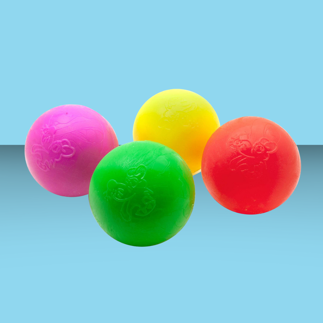 You won't have to worry about losing this heavy duty ball in the grass with its bright neon colors, making games of fetch worry-free! They also float and bounce all over the place, making playing even more fun- and even though it's tough, the gentle rubber won't hurt your pup's teeth. So go ahead, have a ball!