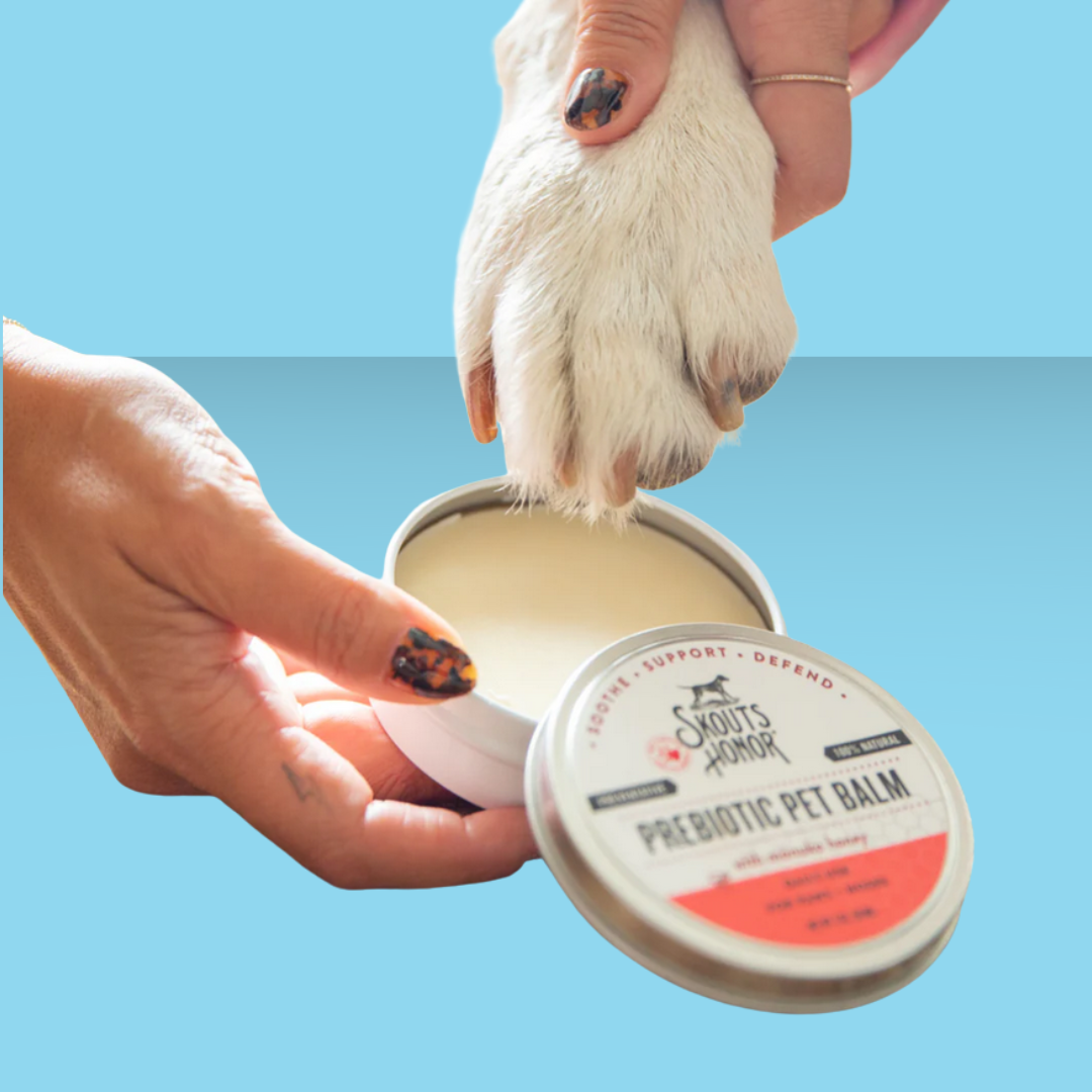 Living in the Midwest means every season can irritate and dry out those sensitive paws and nose- too hot or humid, too cold and dry, and your poor pup's got itching paws. Sooth them easily with this balm! It soothes and supports paws, noses and skin folds while promoting healing and giving extra hydration.