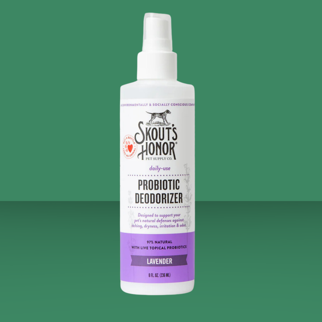Freshen up between baths! This formula does more than just smell nice, though, because Skout's Honor uses probiotics to help your pup have the healthiest skin. When applied to the skin, probiotics support the good bacteria and prevent the bad bacteria from taking over. Good bacteria serve as a natural defense against the environmental damage and inflammation commonly associated with pet skin conditions like excessive itching, dryness, infection and odor.