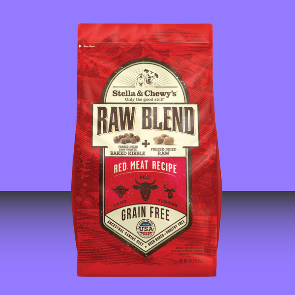 Stella & Chewy's Small Breed Raw Blend Red Meat Recipe delivers a unique combination of protein rich, grain-free baked kibble coated with irresistible freeze-dried raw, and mixed with real, whole pieces of freeze-dried raw beef. The result is a great tasting and convenient high protein diet. The perfect solution to fuel your pet’s wild side!