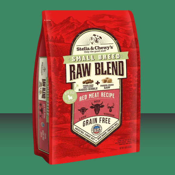 Stella & Chewy's Small Breed Raw Blend Red Meat Recipe delivers a unique combination of protein rich, grain-free baked kibble coated with irresistible freeze-dried raw, and mixed with real, whole pieces of freeze-dried raw beef. The result is a great tasting and convenient high protein diet. The perfect solution to fuel your pet’s wild side!
