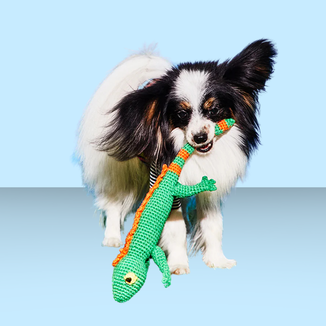 Does your dog ever try to catch lizards on a hike? Get them the satisfaction of a lizard they can definitely catch with this gorgeous hand crocheted lizard! With a long tail, your dog will love to carry this lizard around.
